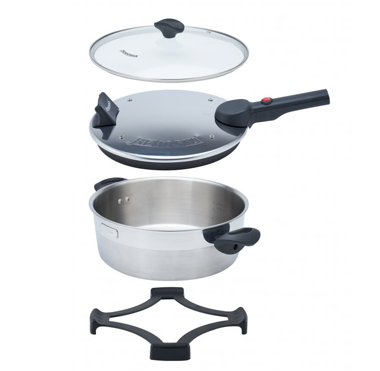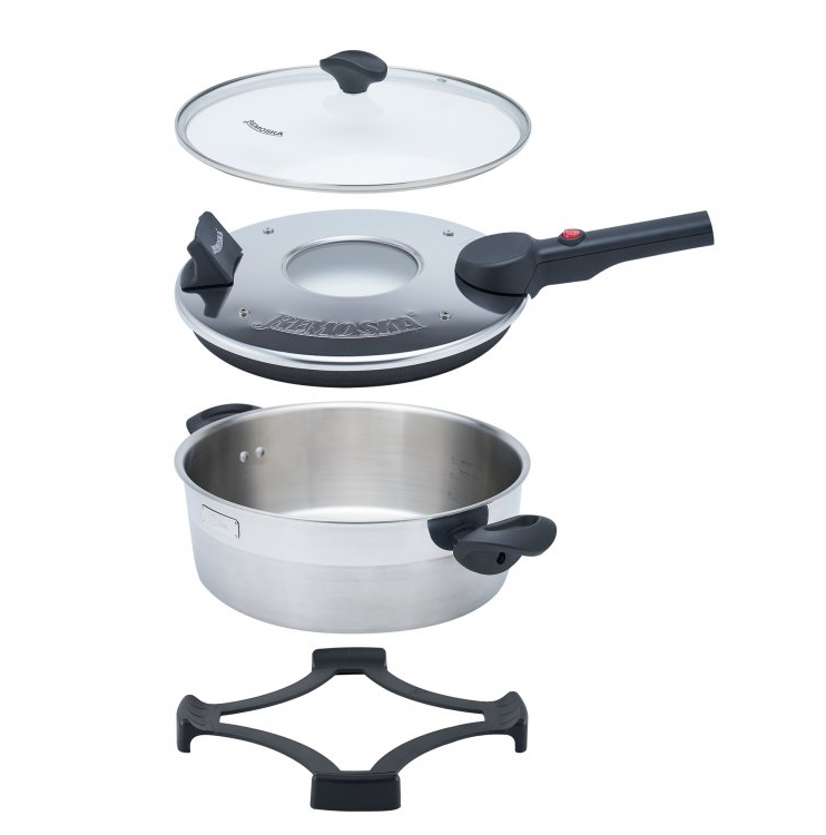 4 l tūrio Remoska Dua D52/10 su 580 W galia ir unikalaus dizaino kepimo dangčiu be lango užtikrina puikius kepimo rezultatus.